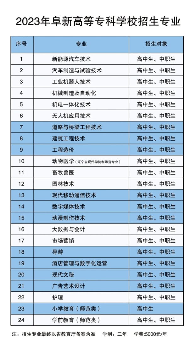 阜新高等专科学校2023年单独招生报考指南